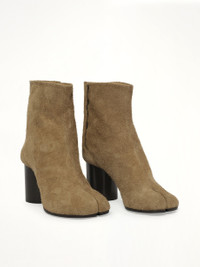 Maison Margiela's Tabi Ankle Boots 8cm in Corn Brown is a distinctive footwear choice that combines avant-garde design with classic elegance. These boots feature the iconic split-toe design, offering a unique silhouette that stands out. - Composition: Upper: 100% Calf Leather - Lining: 100% Ovine Leather - Inside: 100% Ovine Leather - Sole: 100% Calf Leather - Contrast: 100% Rubber - 8cm heel height for an elevated look - Signature Tabi split-toe design - Rich corn brown color for versatile styling - Side zip closure for easy wear - Crafted with attention to detail and quality - Made in Italy SKU: S58WU0260P8270 T2077