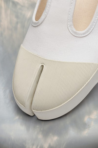 The classic T-bar shoe is updated in cotton canvas with a rubber sole and toe. They feature the Tabi split-toe, inspired by the traditional 15th century Japanese sock bearing the same name – launched for the Maison's debut collection in 1989. It captures the avant-garde and insubordinate spirit of the Maison and exists as a heritage classic, continually explored through each collection. Product Details Item ID S39WS0115P4291T1003 Upper: 100% cotton Contrast: 100% polyester Lining: 100% cotton Inside: 100% cotton Sole: 100% rubber Mary Jane shoes in cotton canvas Rubber Tabi split toe Maison Margiela label on the side Maison Margiela logo and white stitching at the back A digital certificate provided by the Aura Blockchain Consortium guarantees the authenticity of this product. Discover more on auraluxuryblockchain.com/#about