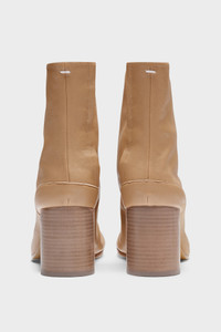 Crafted from soft nappa leather, the ankle boots feature a 8cm cylindrical heel and the Tabi split-toe shape, inspired by the traditional 15th century Japanese sock bearing the same name – launched for the Maison's debut collection in 1989. It captures the avant-garde and insubordinate spirit of the Maison and exists as a heritage classic, continually explored through each collection. Product Details Item ID S58WU0260P3753T4091 Upper: 100% lamb leather Lining: 100% calf leather Inside: 100% calf leather Sole: 100% calf leather Contrast: 100% rubber Heel height: 8 cm/3 in Cylindrical heel Ankle boots in nappa leather Tabi split toe White stitching at the back Maison Margiela logo on the sole Hook closure Due to the delicacy of nappa leather, it is recommended to use vegetable leather products for care and maintenance Made in Italy A digital certificate provided by the Aura Blockchain Consortium guarantees the authenticity of this product. Discover more on auraluxuryblockchain.com/#about