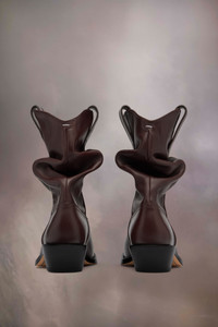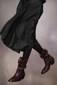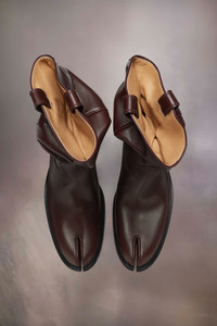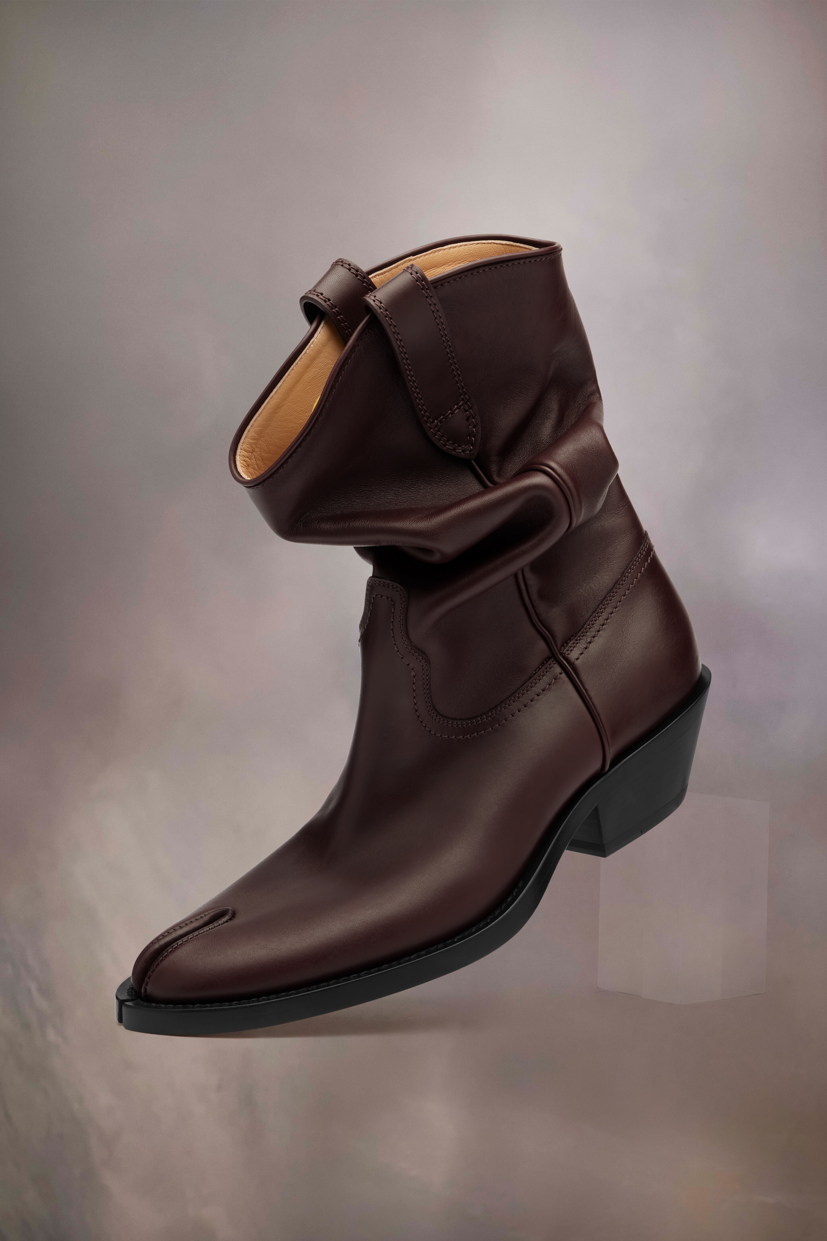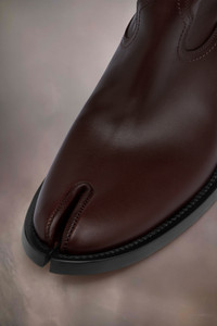 The Tabi Western boots are made of calf leather and feature an almond shaped toe, a new iteration of the iconic style. Maison Margiela’s signature white stitch appears at the back. The Tabi split-toe is inspired by the traditional 15th century Japanese sock bearing the same name – launched for the Maison’s debut collection in 1989. It captures the avant-garde and insubordinate spirit of the Maison and exists as a heritage classic, continually explored through each collection. Product Details Item ID S39WW0068P3292T5080 COED Fall Winter 2023 Upper: 100% Calf leather Lining: 100% Lamb leather Inside: 100% Lamb leather Sole: 100% Calf leather Contrast: 100% Rubber Heel height: 5,5 cm/2,1 in Calf height Pointed Tabi shape Handmade treatment White stitching at the back Brand logo on the sole Internal logo stamping Due to the delicacy of the leather, it is recommended to use vegetable leather products for care and maintenance Made in Italy Toes should be right before the Tabi cut
