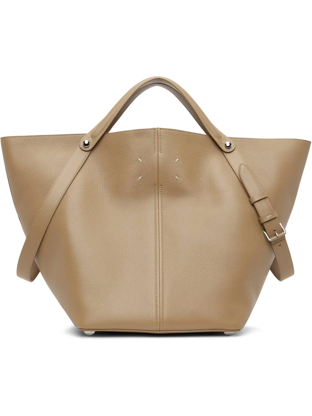 Grained calfskin top handle bag. · Fixed carry handles · Adjustable shoulder straps · Bumper studs at base · White stitching at back face · Magnetic closure · Patch pockets at interior · Goatskin suede lining · H13" x W20" x D9.75" Supplier color: Camel Calfskin. Made in Italy 261168F046008