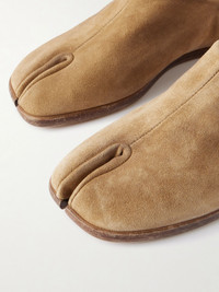 Maison Margiela's signature loafers have split toes inspired by traditional Japanese jika-tabi shoes that date back to the 15th century. They've been crafted in Italy from suede and have collapsible heels so you can wear them as slippers, too. Size & Fit - Fits true to size, take your normal size - Italian sizing Details & Care - Slight heel - Camel suede (Calf) - Slip on