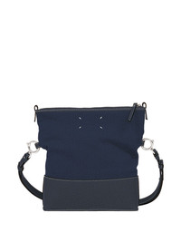top-zip leather shoulder bag Highlights - Dark blue - Canvas body - Leather base - Zip fastening - Adjustable shoulder strap - Signature logo label Made in Italy Composition Outer: Calf Leather 100%, Cotton 79%, Polyester 16%, other fibers 5% SIZE & FIT Measurement DEPTH 1.96 in(5 cm) HEIGHT 8.66 in(22 cm) WIDTH 9.84 in(25 cm)