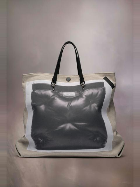 In linen with leather, the Glam Slam shopping bag is printed onto a larger design with the handles from the image becoming top handles, with an additional shoulder strap. The Glam Slam debuted in the SS18 show and has a quilted design which mimics matelassé – the style of hand-stitched quilts created in Marseilles, France. The concept reflects the Maison’s notion of unconscious glamour and evokes its association to comfort, following the study into dressing and travelling rituals worldwide. The bag features a detachable shoulder strap for multi-wear, magnetic closure and is adorned with the numeric logo label at the front. Product Details Item ID SB3WC0004P4777H9202