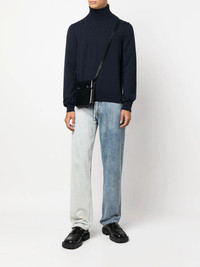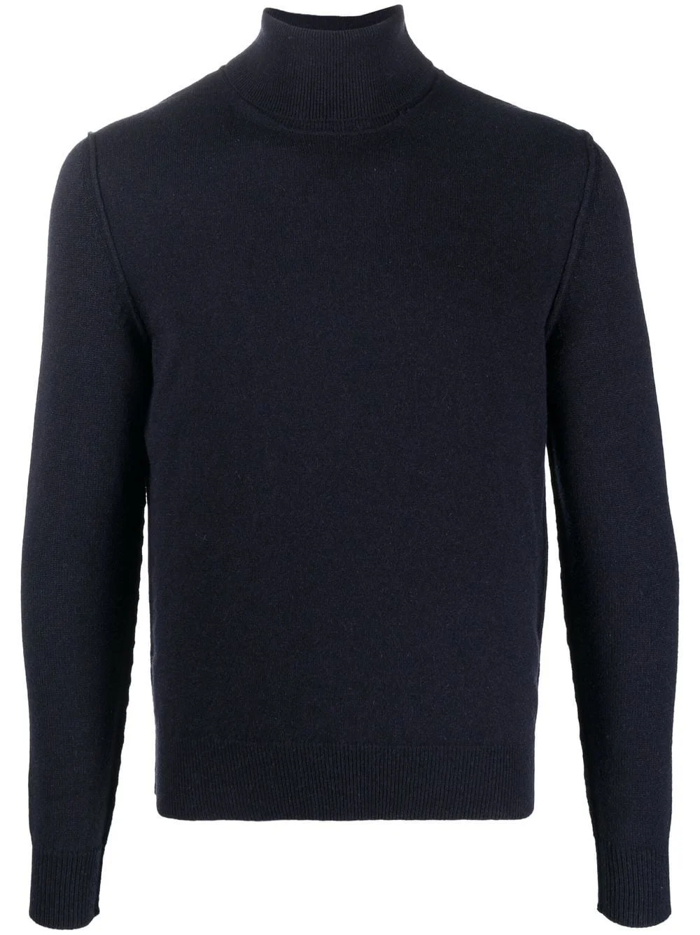 high-neck cashmere jumper Highlights - Navy blue - Cashmere - Fine knit - Signature four-stitch logo - Roll neck - Long sleeves - Ribbed hem - When buying this unisex item, keep in mind that it is graded in standard men's sizing. Made in Italy Composition Cashmere 100% SIZE & FIT Model measurements Height 6 ft 1 in(1.86 m) Bust/Chest 36.61 in(93 cm) Hips 37 in(94 cm) Waist 28.74 in(73 cm) FittingInformation This piece fits true to size. We recommend you get your regular size Cut for a relaxed fit Made with a mid-weight fabric Washing instructions Dry Clean Only