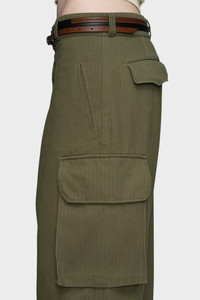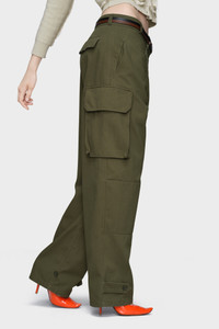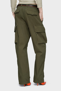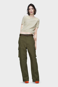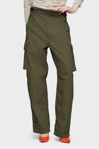 Drawing from the iconic French M-47 fatigue pants, these trousers are cut with a straight leg and feature articulated seams at the knee. Flap pockets and adjustable buttoned hems honour the utilitarian DNA of military design. The Memory of the Creases over the thigh pockets symbolise wear and history, reviving a heritage silhouette through modern detailing. Product Details Item ID S51KA0609M35508728F Primary Fabric: 65% Polyester 35% Cotton Pocket Lining: 100% Cotton High-rise cargo trousers Side flap pockets with piped edge Panelled knees Adjustable tabs at the hem Four stitches at the back Made in Italy
