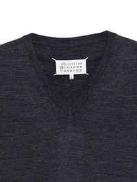 V-neck sweater Highlights - Charcoal grey - V-neck - Long sleeves - Ribbed cuffs - Straight hem - Number label Made in Italy Composition Wool 100% Washing instructions Read Manufacturer Guidelines