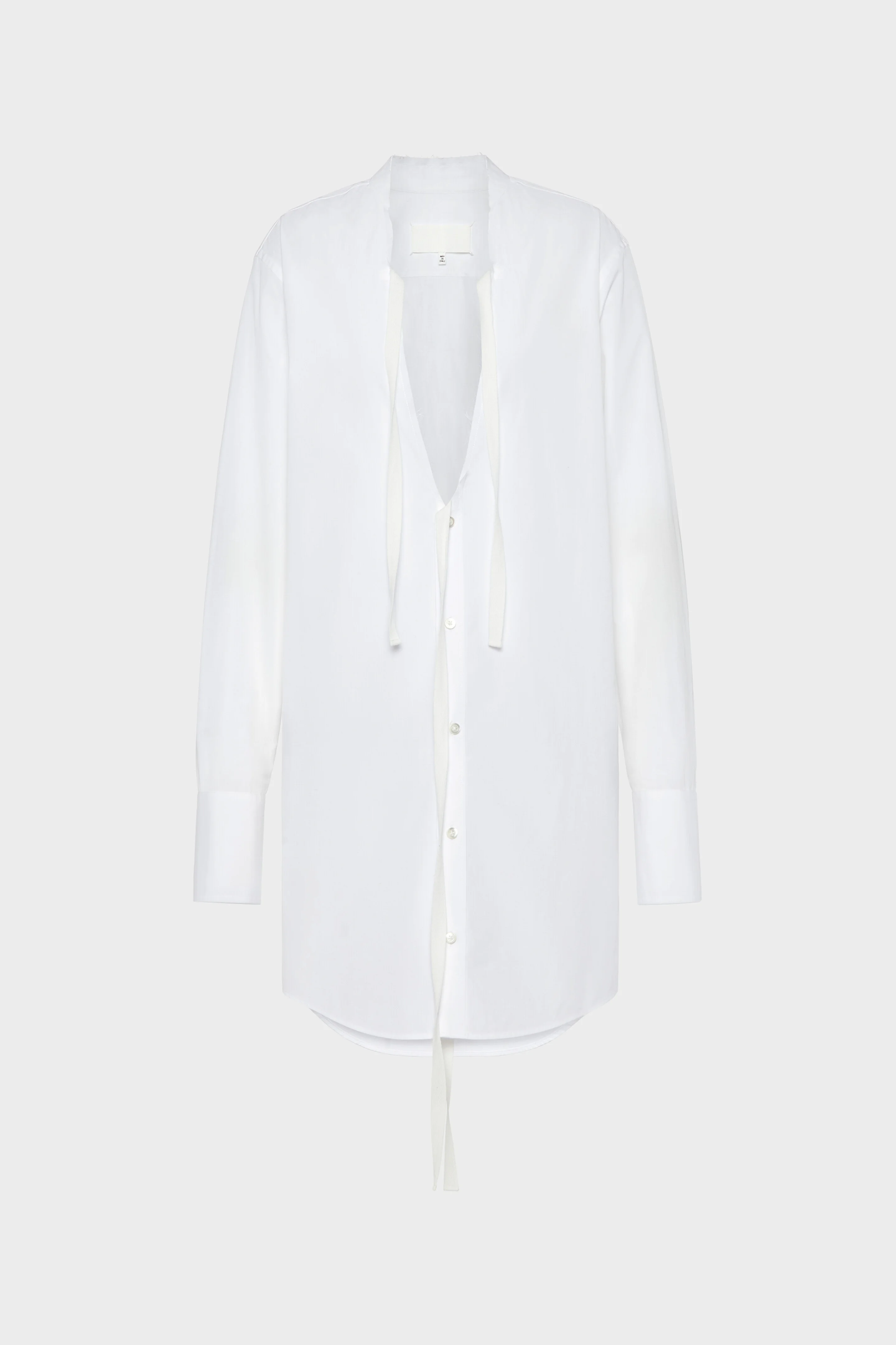 Based on archival pieces, this shirt dress is defined by a deep V neckline cut directly into the collar, left raw at the edge. The front ties are a reference to the blouse blanche- the white lab coats worn by our team. At the back, the Maison’s signature four stitches appear; the opposite of a label. Product Details Item ID S29DD0068S43001100 Primary fabric: 100% cotton Cotton popeline Mini length Long sleeves Plunging neck Front button closure Four stitches at the back Made in Italy