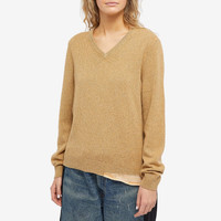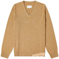 Maison Margiela’s distinctive, minimalist aesthetic shines with this cosy pull-over jumper. It’s knitted from a luxurious blend of wool, cashmere and silk and features a subtle distressing detail at the hem. The iconic four stitching features at the nape, too, to finish. - 47% Wool, 25% Cashmere, 25% Silk, 3% Other Fibres - V-Neck - Ribbed Trims