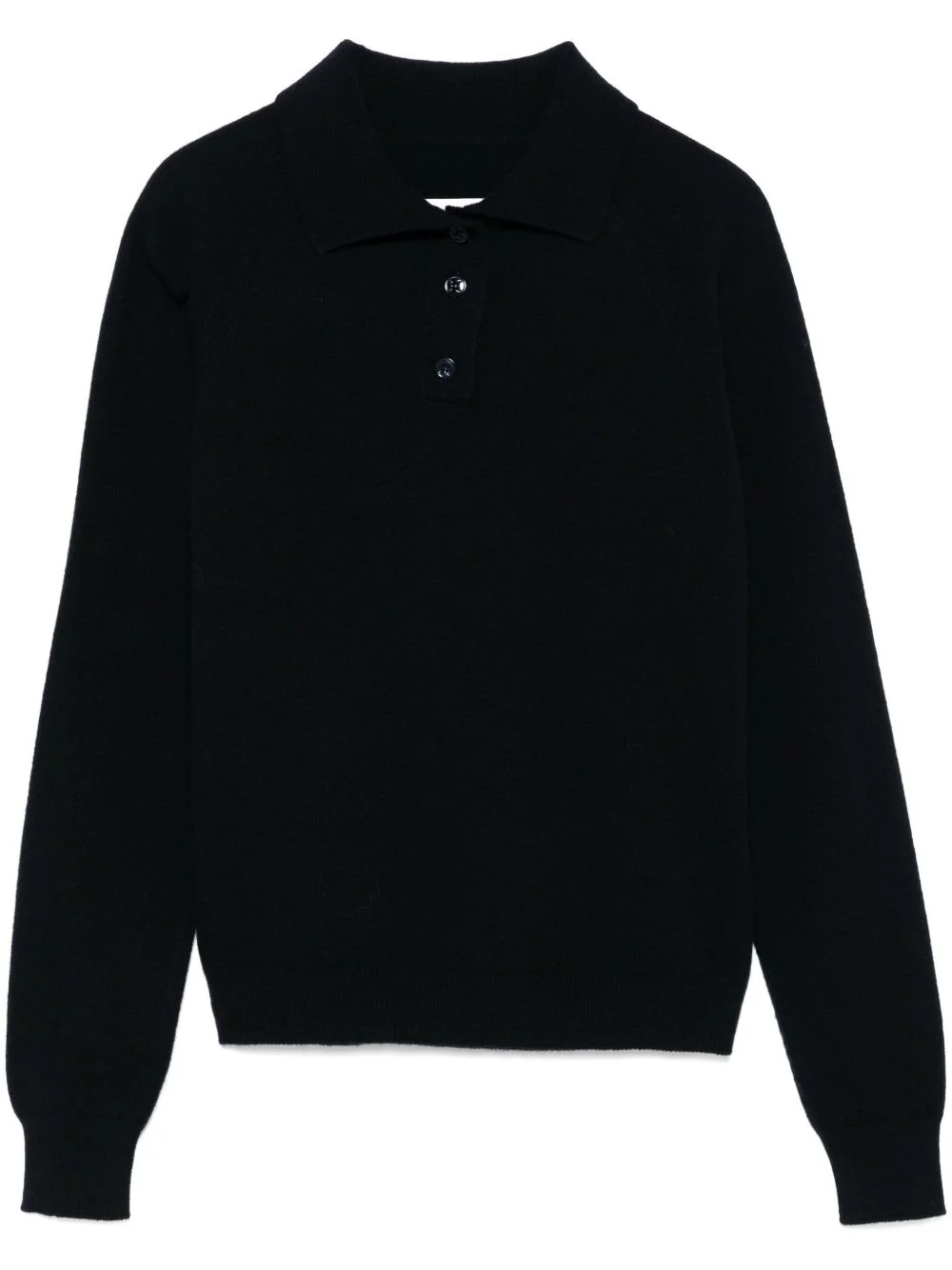 virgin-wool polo top Highlights - Midnight blue - Short front button fastening - Ribbed cuffs and hem - Signature four-stitch logo - Long sleeves Made in Italy Composition Virgin Wool 100% SIZE & FIT Model measurements Height 5 ft 10 in(1.78 m) Bust/Chest 33.85 in(86 cm) Hips 36.61 in(93 cm) Waist 26.77 in(68 cm) FittingInformation Designed for a relaxed fit, this piece allows for comfort and movement when worn Made with a midweight knit, this piece offers some stretch