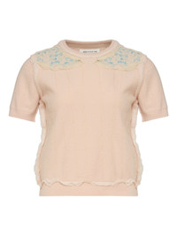 short-sleeve T-shirt Highlights - Pale pink - Floral embroidery - Ribbed hem - Round neck Made in Italy Composition Virgin Wool 100% Washing instructions Read Manufacturer Guidelines