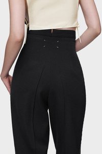 These virgin wool trousers are cut with a high waist and elongated straight leg, their line sharpened by front pleats. Satin stripes run the side seam, evoking tuxedo references while underscoring a refined silhouette. At the back, the Maison’s signature four stitches appear; the opposite of a label. Product Details Item ID S51KA0611S78389900 Primary fabric: 100% wool Lining: 100% viscose-rayon Full-length wide-leg fit Pleated front detail High-rise waistband Side button and zip closure Four stitches at the back Made in Italy