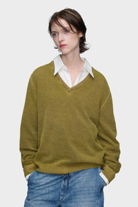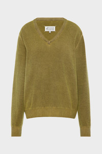This V-neck sweater is crafted in soft virgin wool with a fine knit. Ribbed trims define the collar, cuffs, and hem, anchoring the relaxed silhouette with subtle structure. At the back, the Maison’s signature four stitches appear; the opposite of a label. Product Details Item ID S51HN0007M13224003F Primary fabric: 100% virgin wool Gauge 12/changeant Long sleeves V-neck Four stitches at the back Made in Italy