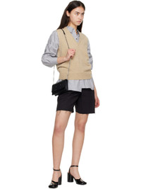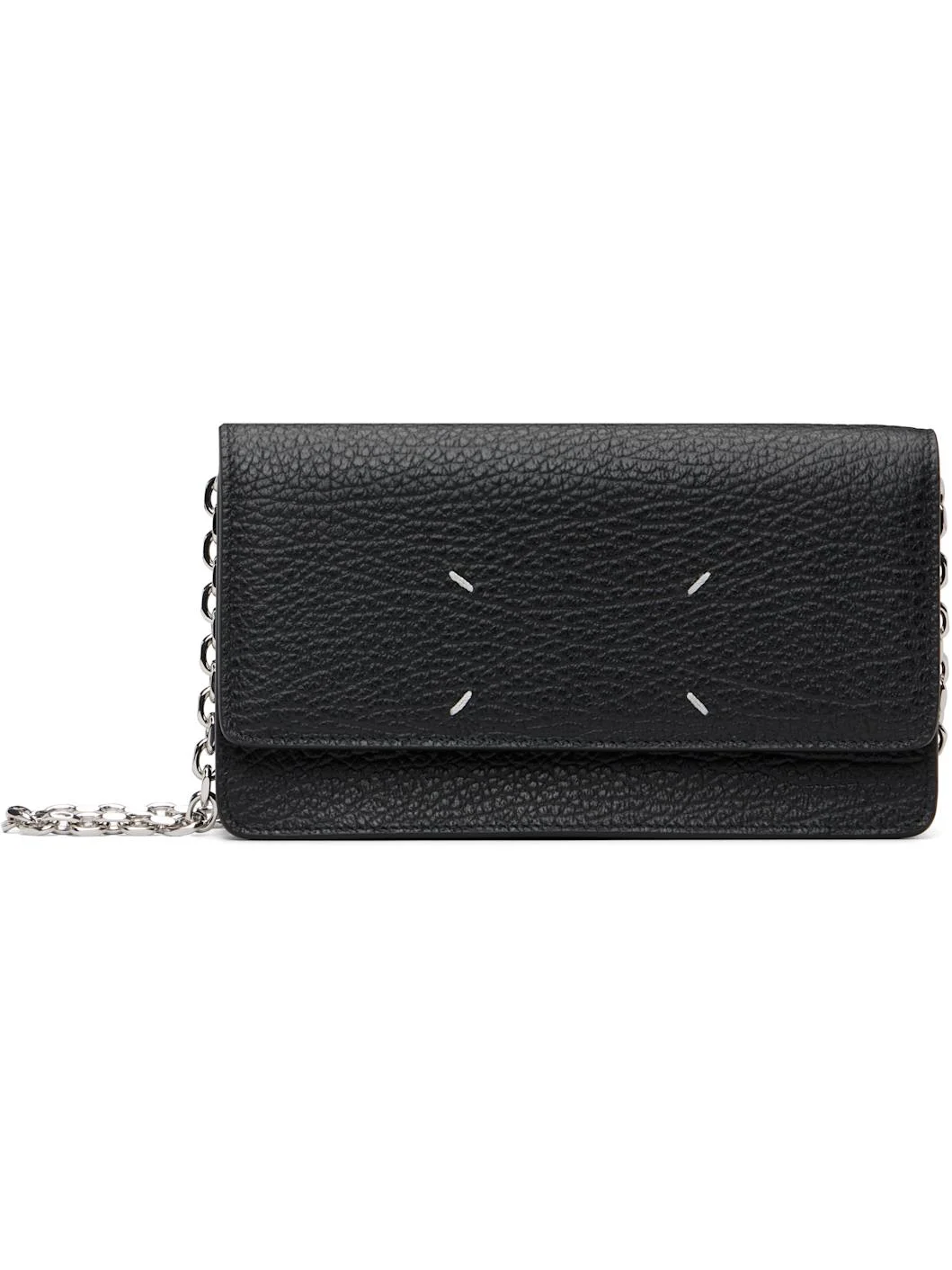 Grained calfskin shoulder bag. · Detachable cable chain crossbody strap · White stitching at face · Patch pocket at back face · Magnetic press-stud flap · Six card slots at interior · Zip and patch pocket · H4.5" x D8" x W1.5" Supplier color: Black Calfskin. Made in Italy 261168F048008
