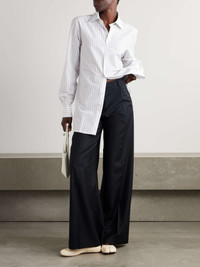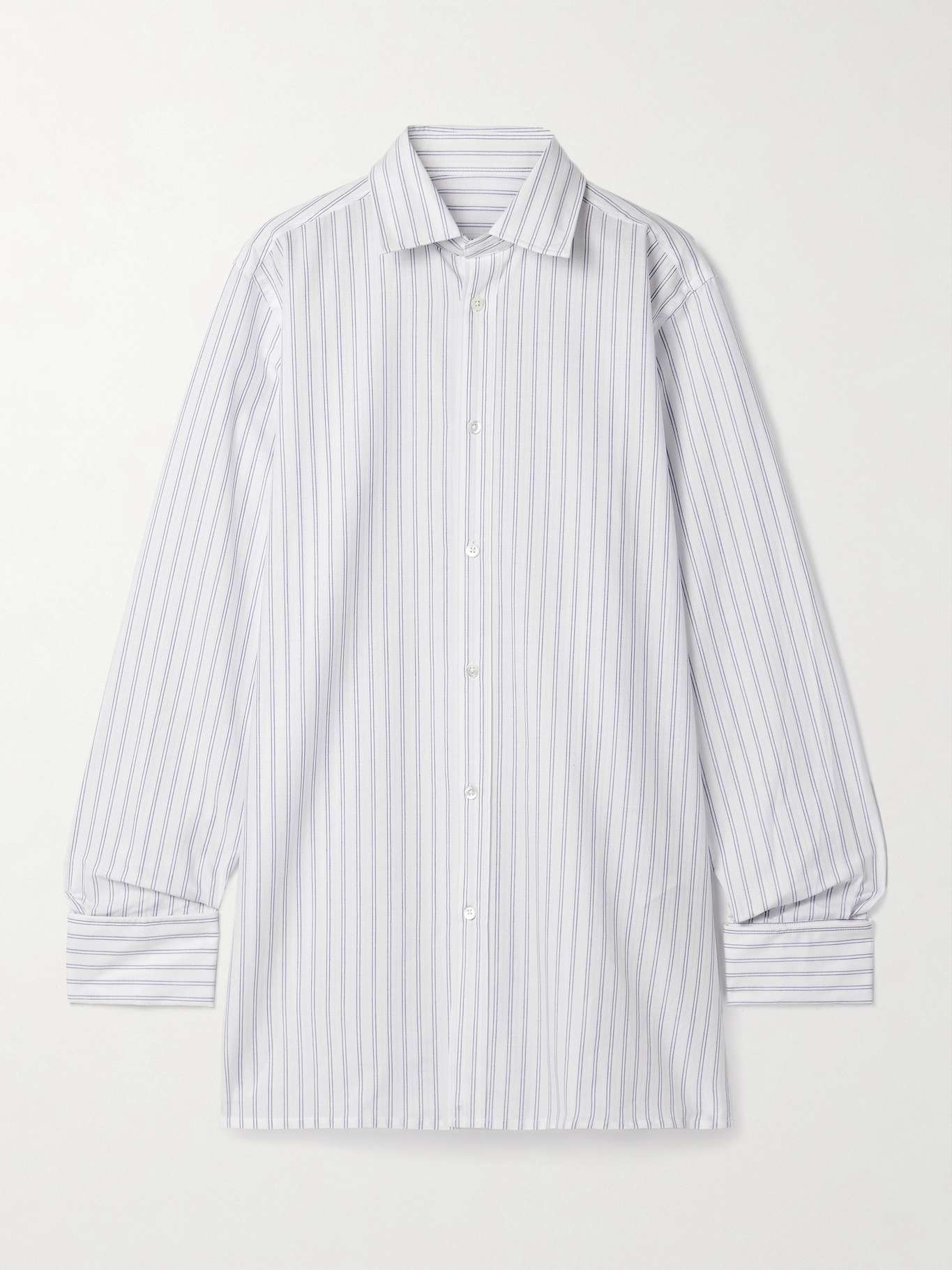EDITORS'NOTES Maison Margiela's shirt is a timeless classic you'll never run out of ways to style. Made from cotton featuring elongating blue stripes, it has an oversized shape with slightly dropped shoulders and a smart collar. Leave a few of the lustrous buttons undone at either end and roll up the cuffs for a nonchalant look. SIZE & FIT - IT 36 = 3XS - IT 37 = 2XS - IT 38 = XS - IT 39 = S - IT 41 = M - IT 42 = L - Designed for an oversized fit, cut to be worn very loose - Lightweight, non-stretchy fabric - Model is 180cm/ 5’11” and is wearing an IT 39 - Bust: 79cm/ 31” - Waist: 61cm/ 24” - Hip: 89cm/ 35” DETAILS & CARE - White and blue cotton - Button fastenings through front - 100% cotton - Machine wash
