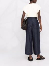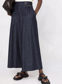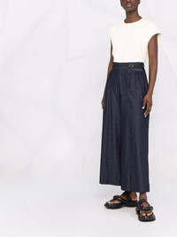 wide leg denim trousers Maison Margiela is a brand known for its rebellious character whilst simultaneously cherishing traditional tailoring techniques. These cropped denim trousers showcase their expertise through the striking contrast stitch, whilst the wide leg gives the pair a relaxed feel. Made in Italy Composition Lining: Cotton 100% Outer: Cotton 100% SIZE & FIT Model measurements Height 5 ft 10 in(1.77 m) Bust/Chest 32.28 in(82 cm) Hips 35.03 in(89 cm) Waist 25.19 in(64 cm) FittingInformation This piece fits true to size. We recommend you get your regular size Designed to be fitted at the waist, loose over the leg Made with a mid-weight non-stretch fabric Washing instructions Dry Clean Only