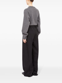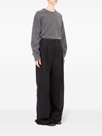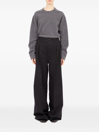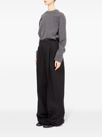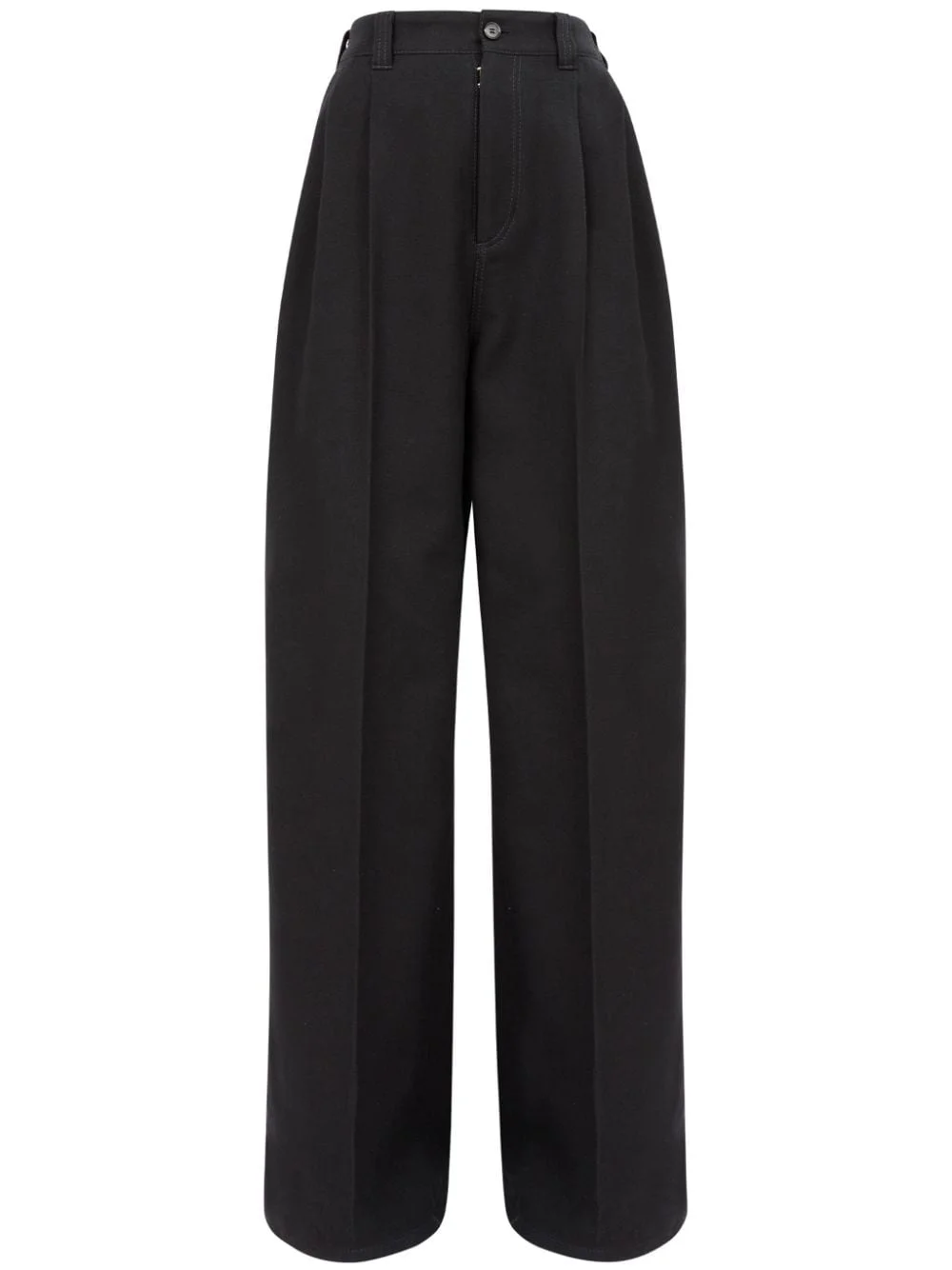 high-waisted pleated wide-leg trousers Highlights - Black - Wool-cotton blend - Pleat detailing - Signature four-stitch logo - High-waisted - Belt loops - Concealed fly and button fastening - Slip pockets to the sides - Two rear welt pockets - Wide leg Made in Italy Composition Wool 50%, Cotton 50%