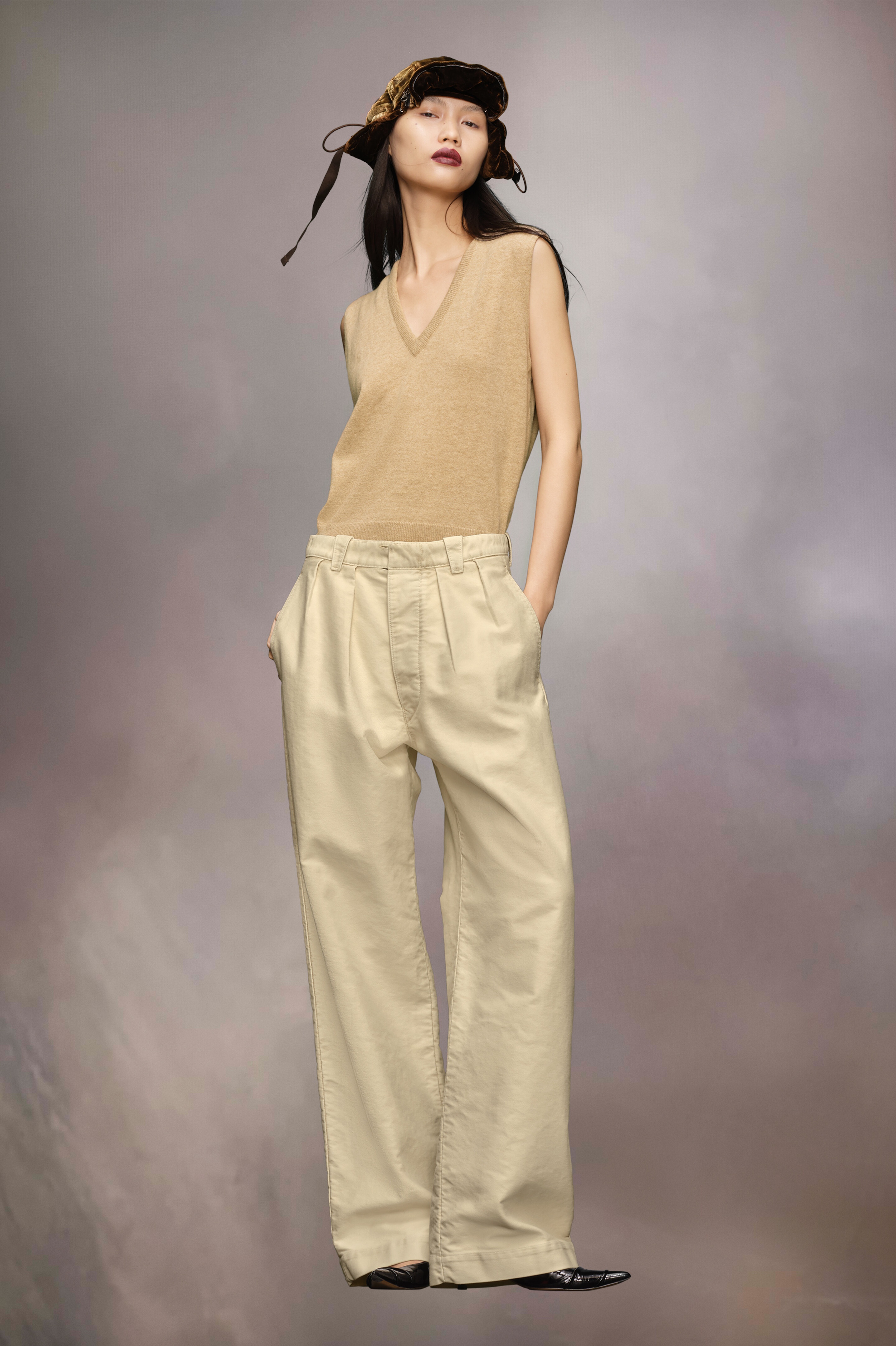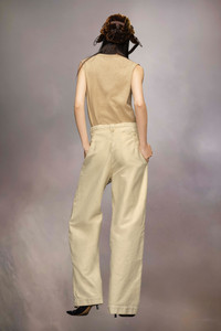 Made in cotton, the jeans have a wide-leg design with pleated details at the front waist. They feature a hidden fastening for a clean aspect and tapered belt loops. The trousers are finished with side pockets and a buttoned pocket at the back. Maison Margiela's signature, the four stitches, appear at the back; the opposite of a label. Product Details Item ID S51KA0600S76543961 Primary Fabric: 100% Cotton Pocket Lining: 100% Cotton Cotton trousers High waist Wide leg Front pleats Horn button closure Side pockets Four stitches at the back Made in Italy Model is 180 cm tall and wears a size 40.