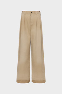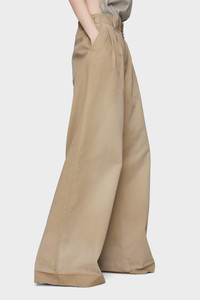 The wide-leg skater chino trousers feature a high-waist with pleats, and the Margiela hook. The back is elasticated, and features welt pockets. At the hem, the Memory of technique shows softly visible fold-lines, adding timeworn character to a modern form. Maison Margiela's signature, the four stitches, appear at the back; the opposite of a label. Product Details Item ID S51KA0608S54042114 Primary Fabric: 60% Polyester 40% Cotton Pocket Lining: 100% Cotton High-rise wide-leg trousers Front pleats and belt loops Subtle contrast panels at the hems Four stitches at the back Made in Italy