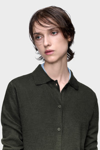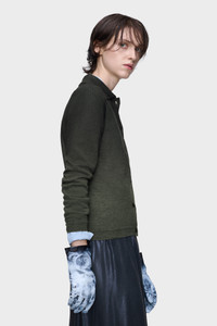 This cardigan is crafted in a fine wool blend using the Maison's pressed and foiled technique, creating a subtle textured sheen. Its fitted silhouette is balanced by a pointed collar and button closure, refining a classic layer through minimal intervention. At the back, the Maison’s signature four stitches appear; the opposite of a label. Product Details Item ID S51HP0031M13236696S Primary fabric: 80% wool 20% polyamide-nylon Gauge 14/lightweight foiled knits Long sleeves Shirt collar Front button closure Four stitches at the back Made in Italy