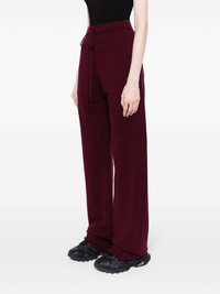 wool-blend knitted trousers These knitted trousers were designed to explore Maison Margiela's concept of the 'travelling outfit'. They're crafted from a wool and cashmere blend with a flared silhouette and adjustable drawstring waist, ensuring effortless and comfortable use. Highlights - Bordeaux red - Wool-cashmere blend - Knitted construction - Elasticated drawstring waistband - Two side inset pockets - Signature four-stitch logo - Flared Imported Composition Wool 70%, Cashmere 30% SIZE & FIT Model measurements Height 5 ft 9 in(1.75 m) Bust/Chest 31.88 in(81 cm) Hips 35.03 in(89 cm) Waist 23.22 in(59 cm) FittingInformation Designed with a flared hem, these trousers allow for a close fit at the waist with a slim fit over the leg and widening towards the hem Adjust this piece’s waistband to your preference using the drawstring Made with a midweight knit, this piece offers some stretch This piece fits true to size – take your usual size Washing instructions Dry Clean Only