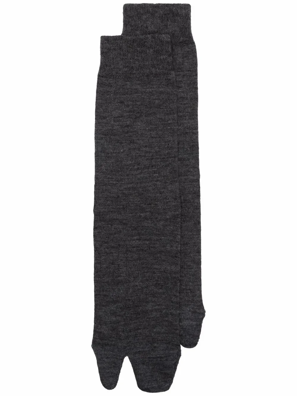 Female Tabi Socks in Dark Grey from Maison Margiela Highlights - dark grey - stretchy design - ribbed detail - tabi toe Made in Italy Designer ID: S51TL0052S17867 Colour ID: 860M Dark grey Materials 78% Wool 22% Polyamide