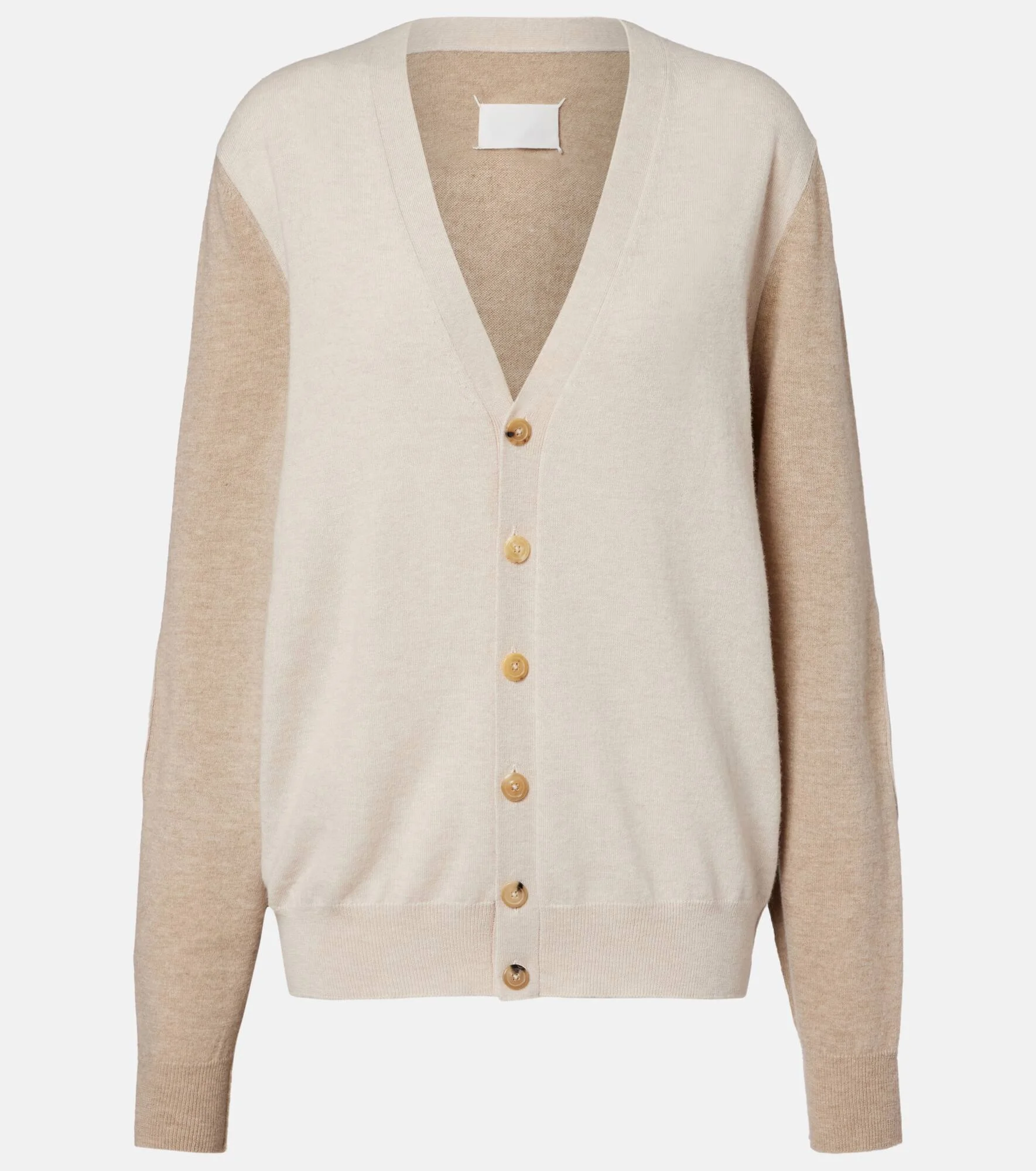 Having shocked audiences with its radical runways and never-before-seen silhouettes in the late ‘80s, Maison Margiela continues to champion bold experimentation. This cardigan is crafted from pure wool with a V-neckline. Product Details - Material: 100% wool - Care instructions: dry clean - Made in Italy - Designer color name: Beige/Camel - Item color: beige - Closure: buttoned front - Cuff: ribbed - Hem: ribbed - Item number: P01079617 Size & Fit - True to size - Designed for a loose fit - Slightly stretchy fabric - Falls below the hip - The model seen in the picture is 178cm-5'10" and wearing a size XS