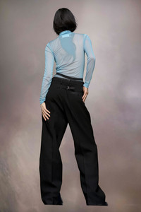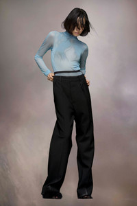 The wool gabardine trousers have an adjustable back, belt loops and pockets. The finish is inspired by German photographer August Sander and his work “People of the 20th century”, and recreates the lived-in feeling of heritage tailoring by applying a shiny patina on waist, hem, and pleats, as if the trousers have been worn and treasured for decades. Maison Margiela’s signature, the Four stitches, appear at the back; the opposite of a label. Product Details Item ID S51KA0589S78075961 Primary fabric: 100% wool Pocket lining: 100% cotton Trousers in washed wool gabardine with subtle used effect Horn button closure Belt loops Low-waist Straight leg Central pleat Side pockets Buckle at the back to adjust the fit Four stitches at the back Made in Italy