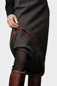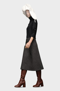 An A-line skirt in herringbone wool lending a minimal aesthetic. At the back, four white stitches show the hand of the Maison: the opposite of a label. Product Details Item ID SI0MA0001S53338855F Composition: 100% Wool herrigbone A-line midi skirt Side zip closure Four stitches at the back Made in Italy The model is 5'10" tall and wears size 40.