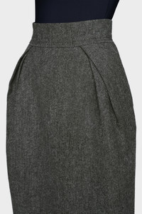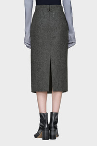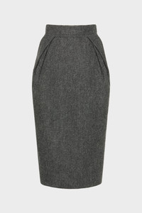 Tailored from thick wool with a soft herringbone texture, this midi skirt features structured front pleats that create volume through the hip. A high waistband frames the silhouette, drawing focus to the subtle architectural shaping. At the back, the Maison’s signature four stitches appear; the opposite of a label. Product Details Item ID S29ME0032M35569855M Primary fabric: Primary Fabric: 100% Wool Lining: 100% Viscose-Rayon Pocket Lining: 100% Cotton High-waisted midi skirt in herringbone wool Front pleats with curved top seams Hook and eye fastening Four stitches at the back Made in Italy