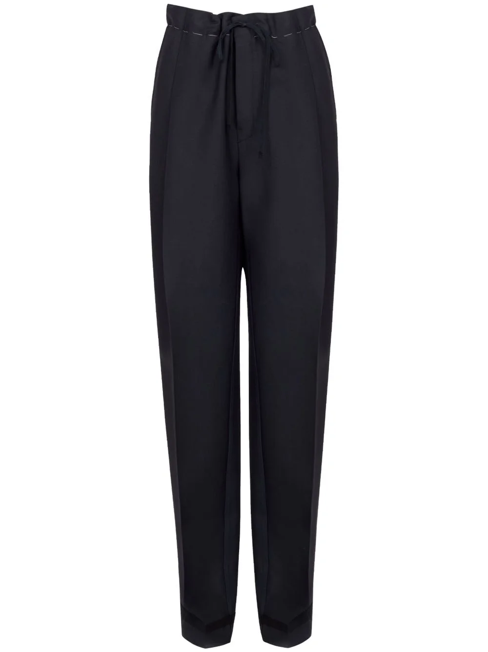 drawstring pressed crease trousers Highlights - Black - Mohair-wool blend - Drawstring fastening waist - Pressed crease - Rear button-fastening jetted pocket - Floor-length Made in Italy Composition Mohair 60%, Wool 40%