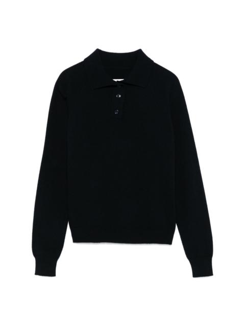 wool polo top Highlights - Grey - Short front button fastening - Polo collar - Long sleeves - Signature four-stitch logo Made in Italy Composition Virgin Wool 100%