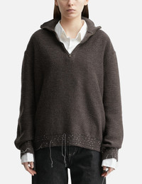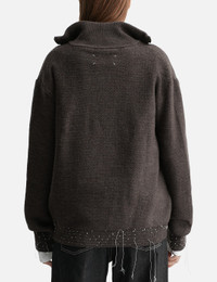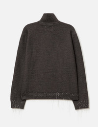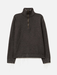 - Maison Margiela - Wool Quarter-Zip Sweater - Made of gauge 5 elastic wool knits - Turtleneck - Long sleeves - Decorative loose stitching at hem and cuffs - Center zipper closure - Four stitches at the back - Made in Italy - Color: Brown - Material: 100% Wool - See more Knitwear and Clothing - Model wears size M - Model measures: Height 187cm, Chest 35.4”/90cm, Waist 27”/69cm, Hip 36”/91cm - Vendor Code: S51HL0040M13227143F