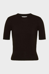 In virgin wool, the minimal knitwear top has a classic crew-neck design and offers a relaxed fit with cropped length. It features short sleeves with ribbed trims around the neck, cuffs and at the hem for further texture. Maison Margiela's signature, the four stitches, appear at the back; the opposite of a label. Product Details Item ID S51HL0018M13090144M Primary Fabric: 100% Virgin Wool Gauge 12 Virgin wool top Crewneck Ribbed trims Four stitches at the back Made in Italy Model is 178 cm tall and wears a size S.