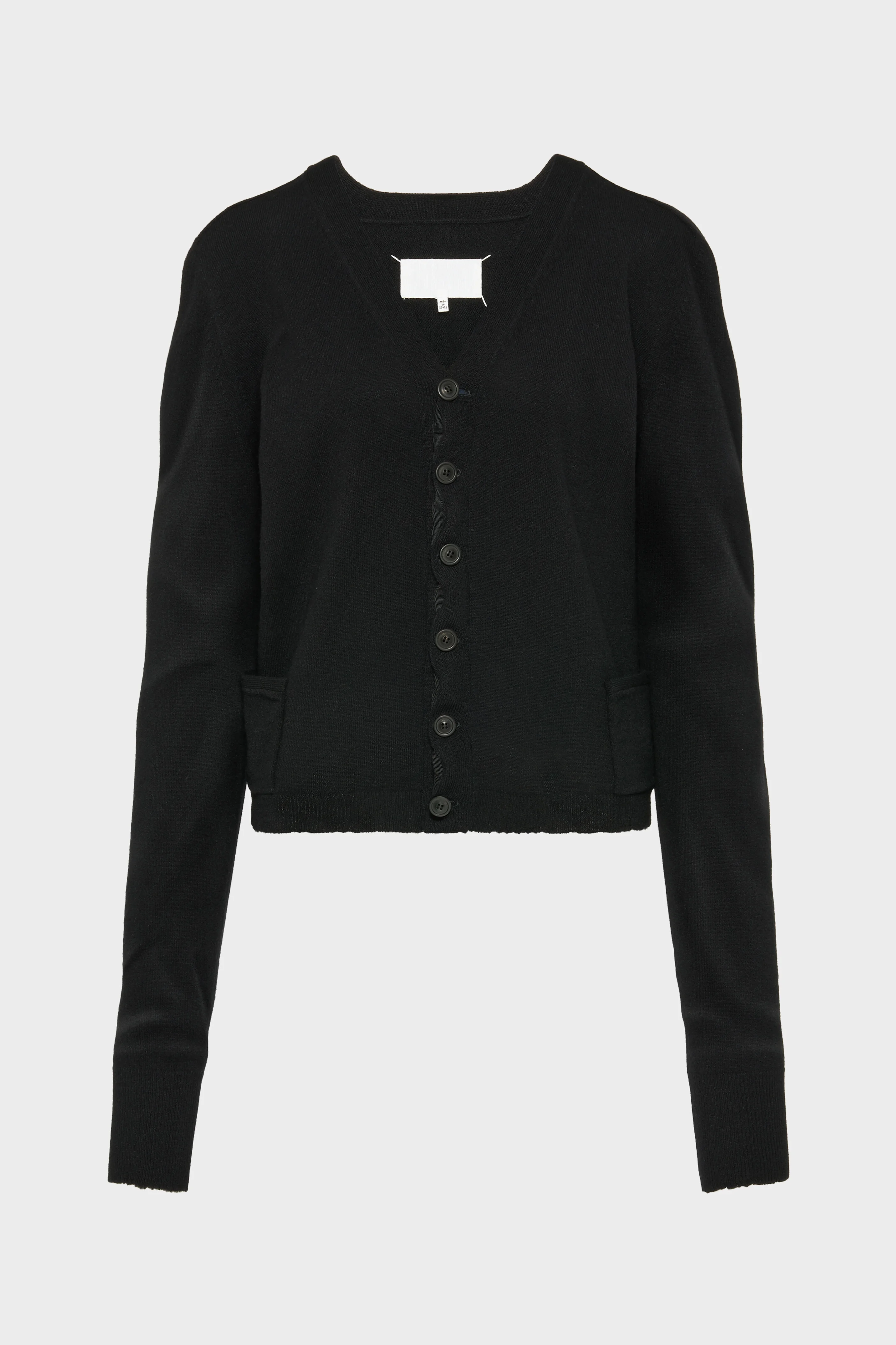 A cropped silhouette and shoulder seam detail bring quiet volume to this wool cardigan. Its V-neckline and neat button placket offer a refined frame, while the irregular front pockets introduce discreet subversion. At the back, the Maison’s signature four stitches appear; the opposite of a label. Product Details Item ID S29HP0040M13178900 Primary fabric: 100% Wool Long-sleeved wool cardigan Cropped silhouette V-neckline with front button fastening Two front pockets Back shoulder detail Ribbed cuffs and hem Four stitches at the back Made in Italy