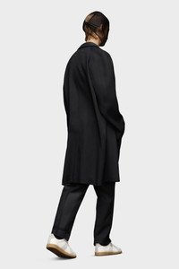 Crafted from wool viscose, the coat features a contrast collar and a button at the top with a hidden placket for a clean aspect. A single vent finishes the design. Maison Margiela's signature, the four stitches, appear at the back; the opposite of a label. Product Details Item ID SI0AA0003S54959900 Composition: 52% Viscose, 48% Virgin wool Pointed collar Button closure with red M embroidery Covered buttons Side pockets Four stitches at the back Made in Italy The model is 6'2" tall and wears size 40.