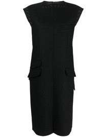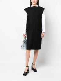 Work-in-progress wool dress black virgin wool/cotton signature four-stitch logo contrast stitching round neck chest welt pocket three front flap pockets sleeveless straight hem rear slit knee-length Made in Italy Composition Outer: Virgin Wool 100% Lining: Polyester 100%, Cotton 100%, Acetate 65%, Viscose 35% SIZE & FIT Model measurements Height 5 ft 10 in(1.78 m) Bust/Chest 31.49 in(80 cm) Hips 36.22 in(92 cm) Waist 25.59 in(65 cm) FittingInformation This piece fits true to size. We recommend you get your regular size Cut for a loose fit Made with a mid-weight non-stretch fabric Washing instructions Dry Clean Only
