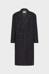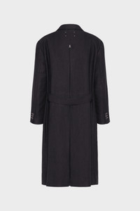 Inspired by classic gentleman's outerwear, the woven long coat in a linen and wool blend has an oversized silhouette lending a gesture of louche style. Contrast Work-in-progress stitches can be seen throughout, with a back belt and inverted box pleat, double-breasted front and flap pockets. Maison Margiela's signature, the four stitches, appear at the back; the opposite of a label. Product Details Item ID S51AA0357M35360900M Primary Fabric: 59% Linen 41% Virgin Wool Lining: 50% Acetate 50% Viscose-Rayon Sleeve Lining: 63% Acetate 37% Viscose-Rayon Pocket Lining: 100% Cotton Lining: 50% Acetate 50% Viscose-Rayon Yarn dyed Wool and linen twill coat Peak lapel Double-breasted closure Welt chest pocket Flap pockets Buttoned cuffs Belted waist Single vent Four stitches at the back Made in Italy