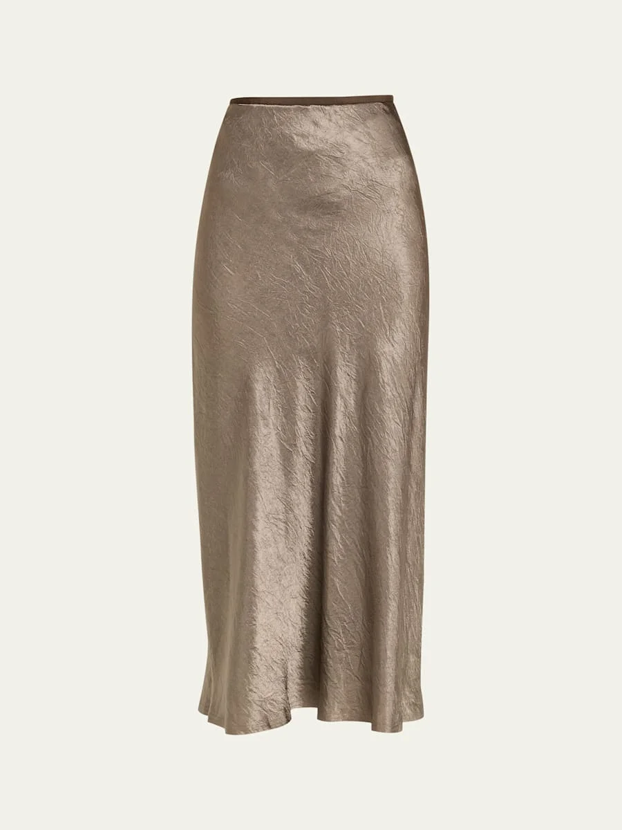 Wrinkle Satin Midi Skirt