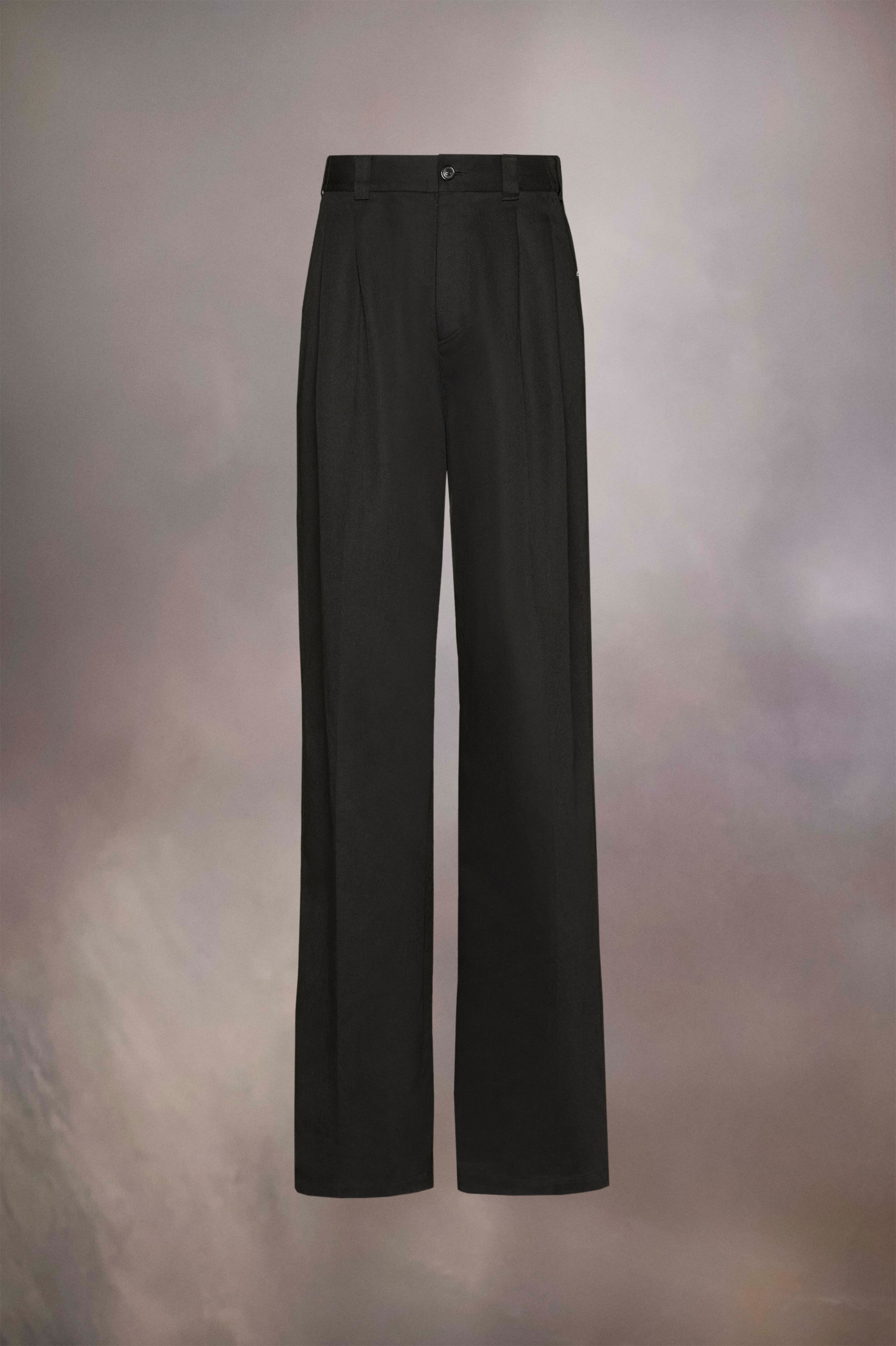 The skater chino oversized trousers have pleats and the Margiela hook closure. They feature a yoke, inspired by the famous ink blots of the Rorschach test, with swirling lines to allude to the iconic yokes of the American West. The yoke showcases the Maison's décortiqué technique to reveal the underlying material of the garment, which exposes the process of construction – a new version of work-in-progress. Maison Margiela’s signature, the Four stitches, appear at the back; the opposite of a label. Product Details Item ID S51KA0591S54042900 Primary fabric: 60% polyester, 40% cotton Pocket lining: 65% polyester, 35% cotton Skater chino pants Horn button closure with elasticated waistband at the back Belt loops Wide leg Central pleat Side pockets Décortiqué details at the back Four stitches at the back Made in Italy Model is 185cm tall and wears a size 40.