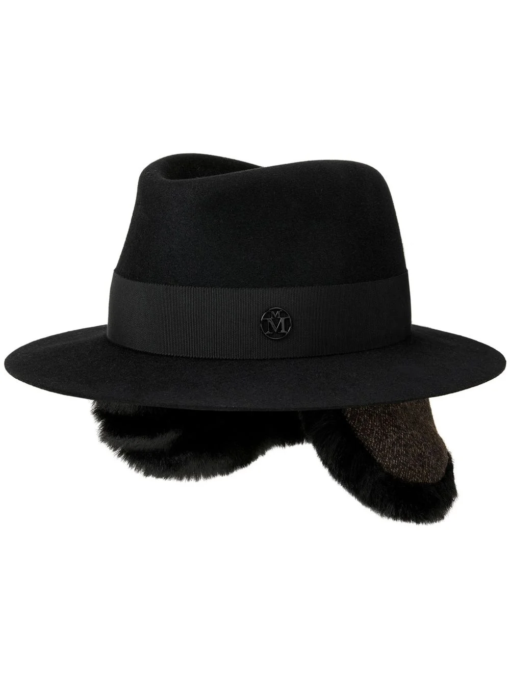 Andre strap-detail fedora hat Highlights - Jet black - Wool - Felted finish - Push-down crown - Wide brim - Logo plaque - Strap detailing - Detachable ear flaps - Full lining Made in France Composition Wool Felt 100%