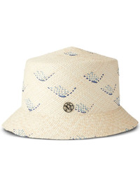 Arsene straw cloche hat Highlights - Ecru/blue - Straw - Interwoven design - Floral motif - Logo plaque - Dropped narrow brim Made in Italy Composition Straw 100%