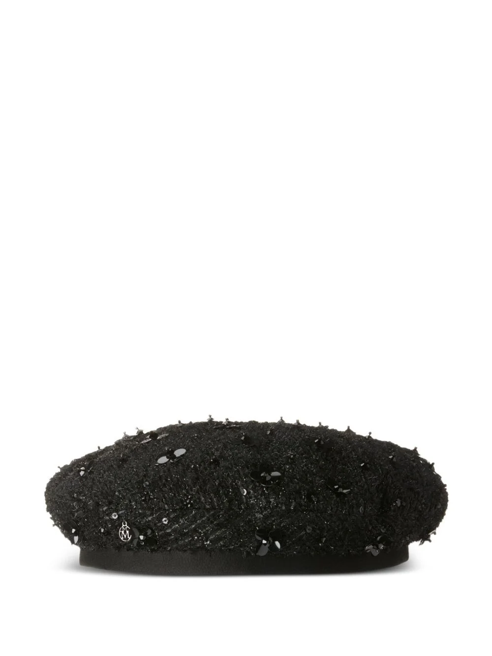 beaded textured beret Highlights - Black - Embellished with beads - Logo detail - Rounded crown Made in Italy Composition Sequin 100%, Fabric 100%