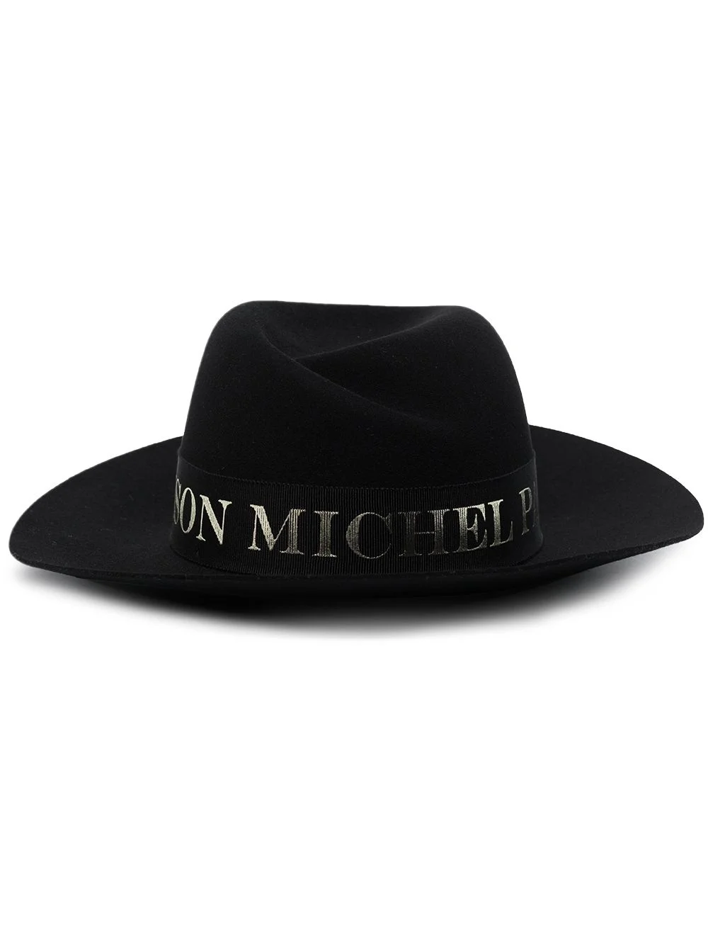 Virginie logo-tape fedora hat black wool logo-tape detailing wide brim Imported Composition Wool 100%, Cotton 50%, Viscose 50% SIZE & FIT Model measurements Height 5 ft 10 in(1.78 m) Bust/Chest 30.7 in(78 cm) Hips 33.85 in(86 cm) Waist 22.44 in(57 cm) Measurement BRIM 2.95 in(7.5 cm) CIRCUMFERENCE 21.25 in(54 cm)