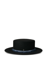 logo-plaque hat Highlights - Black - Fringe detailing - Pull-on style - Wide brim - Logo-plaque at the front Made in France Composition Cotton 90%, Aluminium 10% Outer: Wool Felt 100% Washing instructions Specialist Cleaning