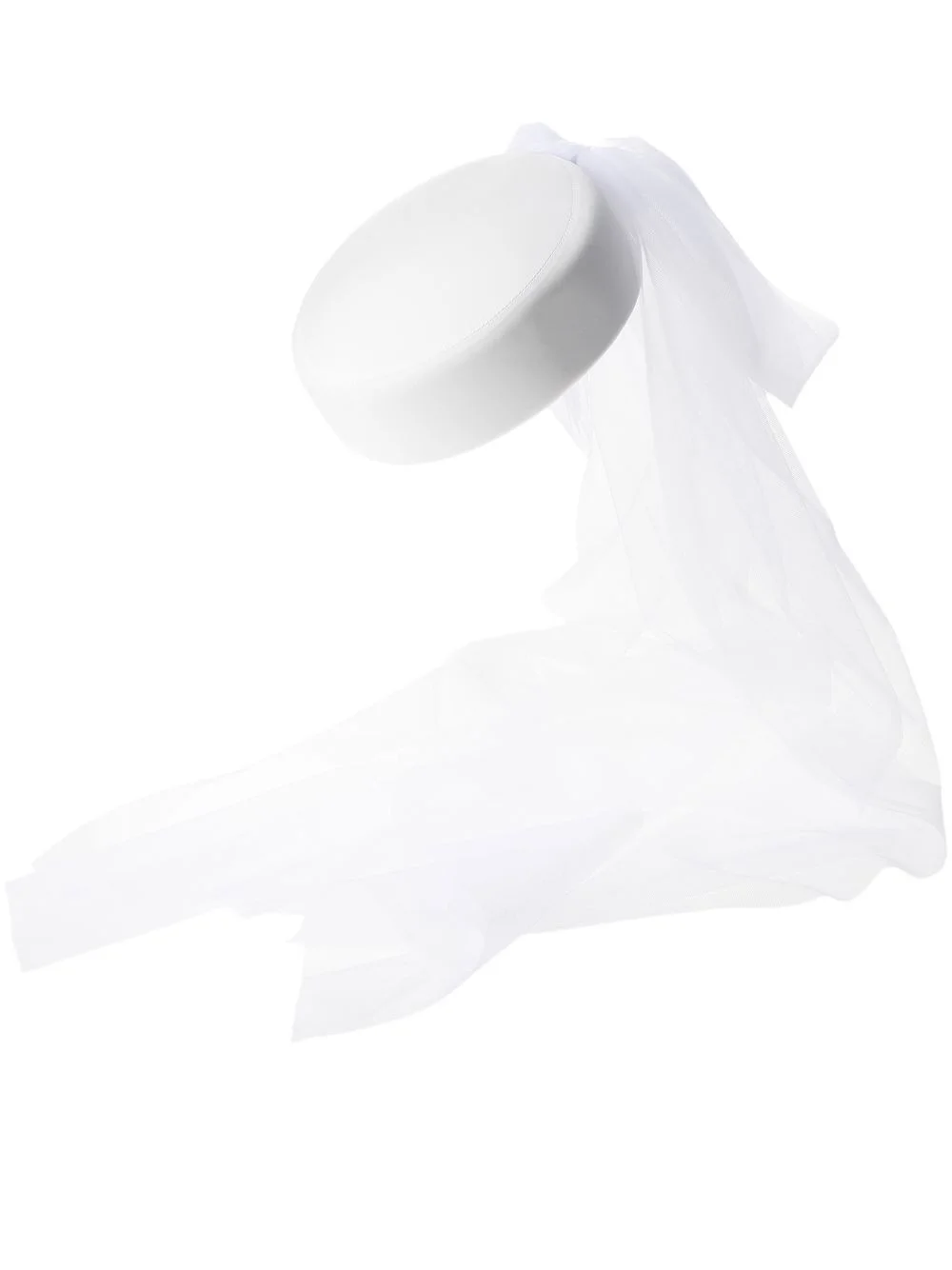Jacqueline felt pillbox hat Highlights - Jackie pillbox hat from maison michel featuring white, rabbit felt, taffeta, tulle netting, bow detailing and medallion pendant. Made in France Composition Wool Felt 100% Washing instructions Do Not Wash/Do Not Dry Clean