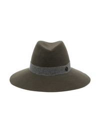 Kate felt fedora hat khaki green wool felt ribbon detail at the crown logo plaque curved wide brim Imported Composition Wool Felt 100% SIZE & FIT Measurement BRIM 3.54 in(9 cm) CIRCUMFERENCE 22.04 in(56 cm) Washing instructions Dry Clean Only