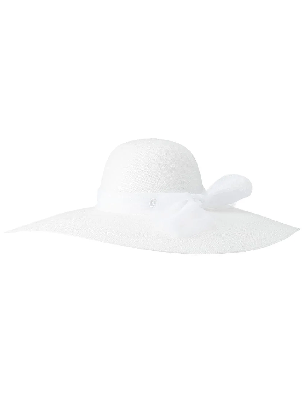 Blanche straw sun hat white straw interwoven design ribbon band logo plaque wide brim Made in Italy Composition Straw 100% Washing instructions Do Not Wash/Do Not Dry Clean