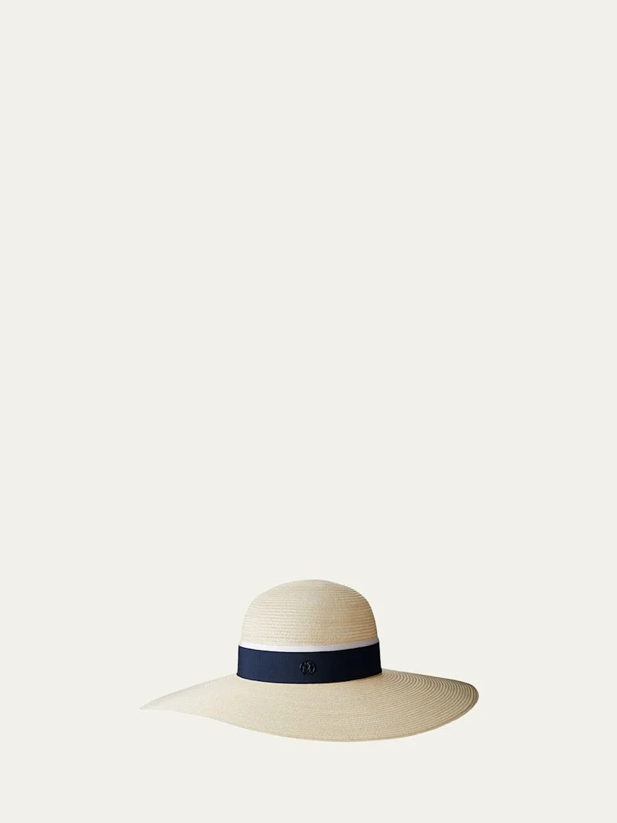 Maison Michel straw hat with contrast band/logo medallion Round crown Large brim Straw Made in Germany Online Inquiries: BGS21_D45KY| Store Inquiries: #4245057