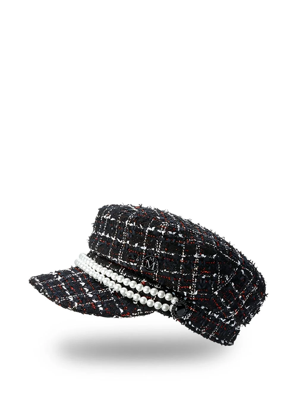 Lila hat Highlights - Black - Pearl embellishment - Grid pattern - Peaked brim - Logo detail Made in France Composition Polyamide 45%, Fabric 30%, Polyester 25% Washing instructions Specialist Cleaning